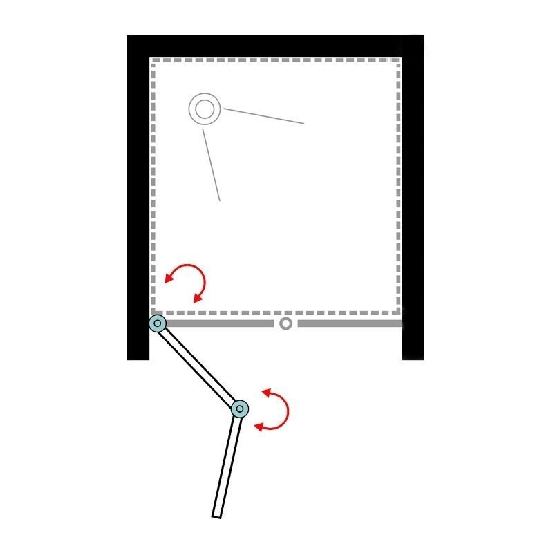 Durys varstomos 180° kampu tiek į išorę, tiek į vidų. Dvidalės suveriamos dušo durys su viduriniu sulenkimo profiliu. Suveriamos durys taupo vonios kambario erdvę. Kai dušo erdvė nenaudojama, durys gali būti suveriamos į nišos vidų.