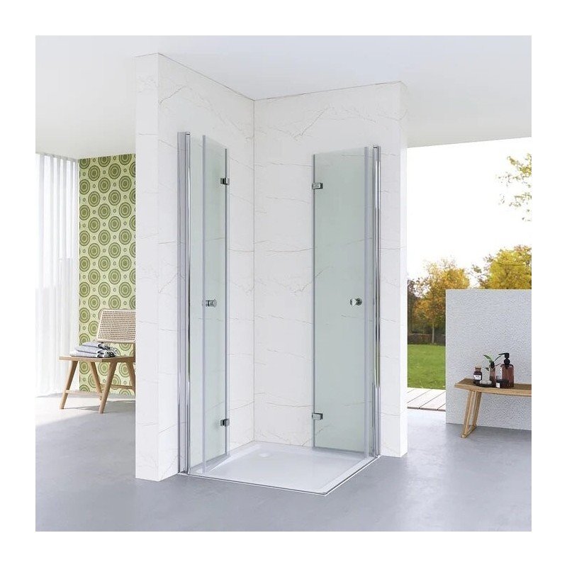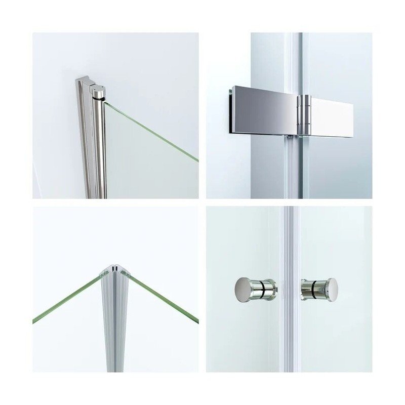 Chromo spalvos aliuminio profiliai. Durų sienelių pločio reguliavimo diapazonas abiejose pusėse: 87,5-89 cm