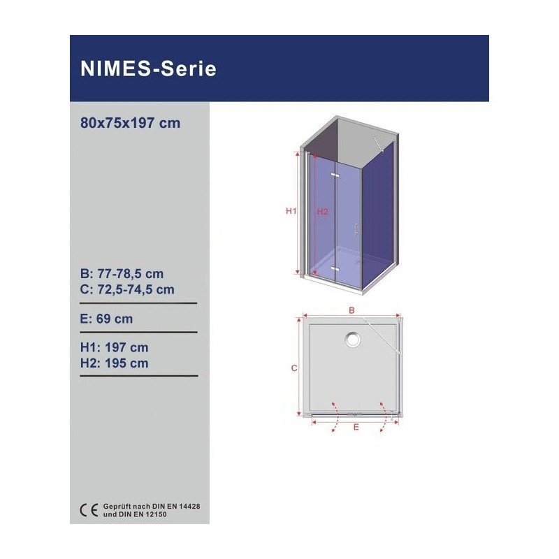 | Dušo kabinos matmenys | 750x800 |