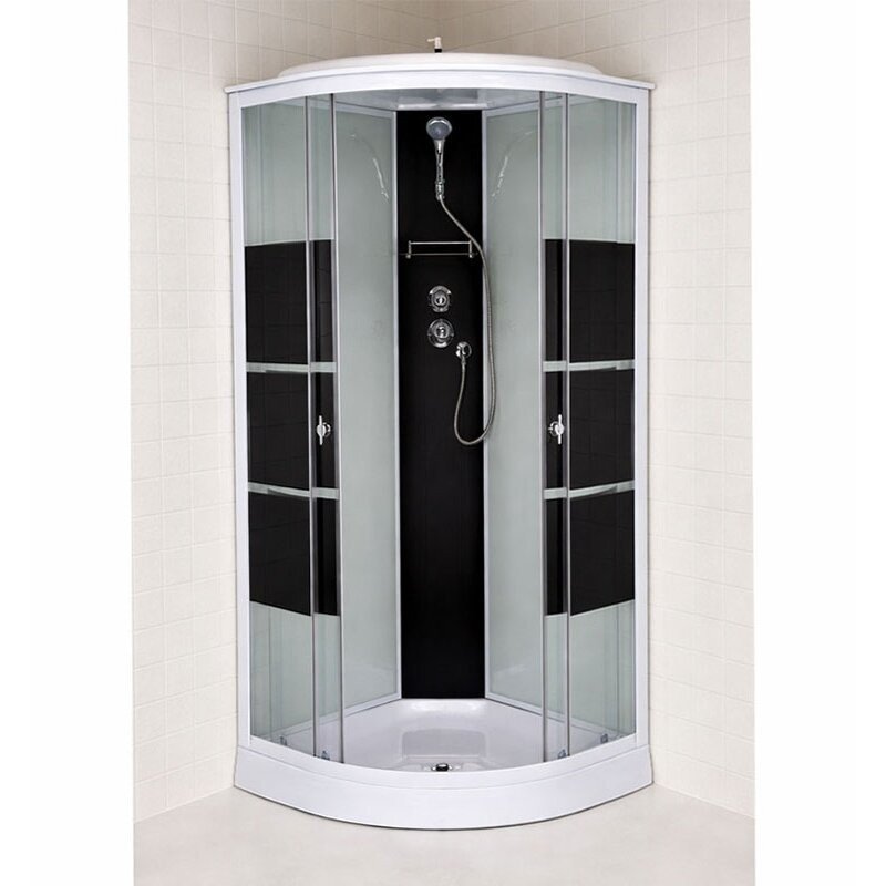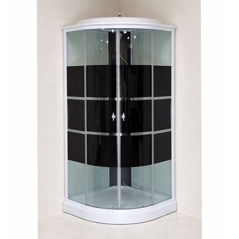Pusapvalė ketursienė dušo kabina su akrilo padėklu