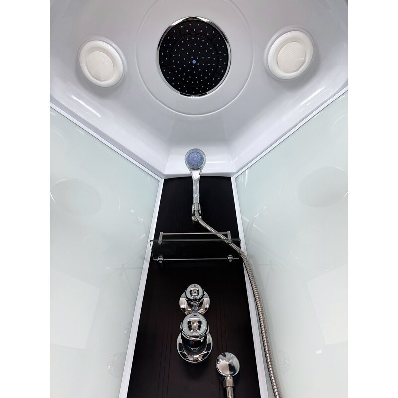 Komplekte: lietaus dušas, rankinis dušas, maišytuvas, lentynėlė, sifonas.