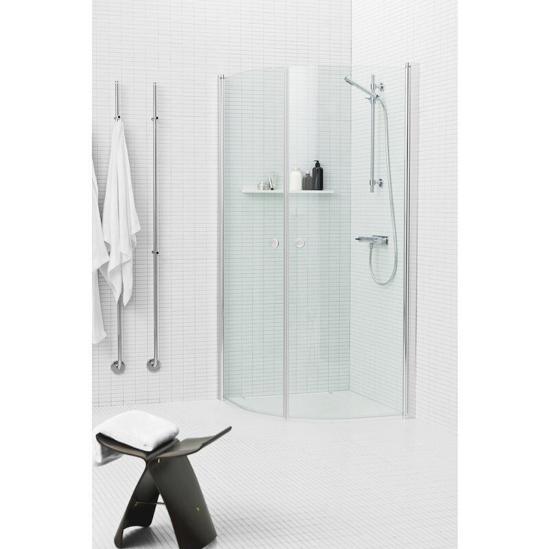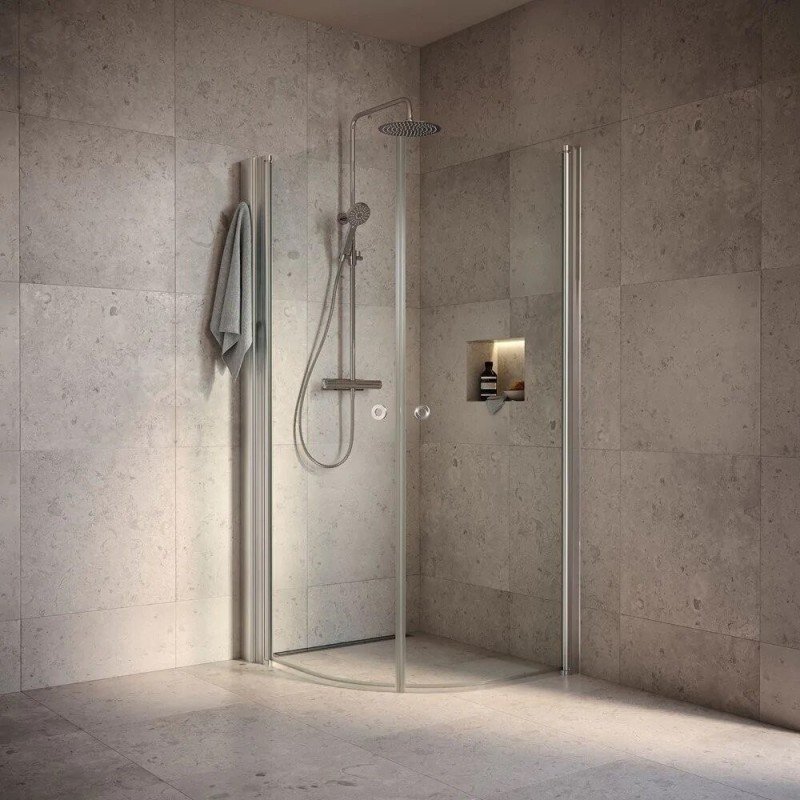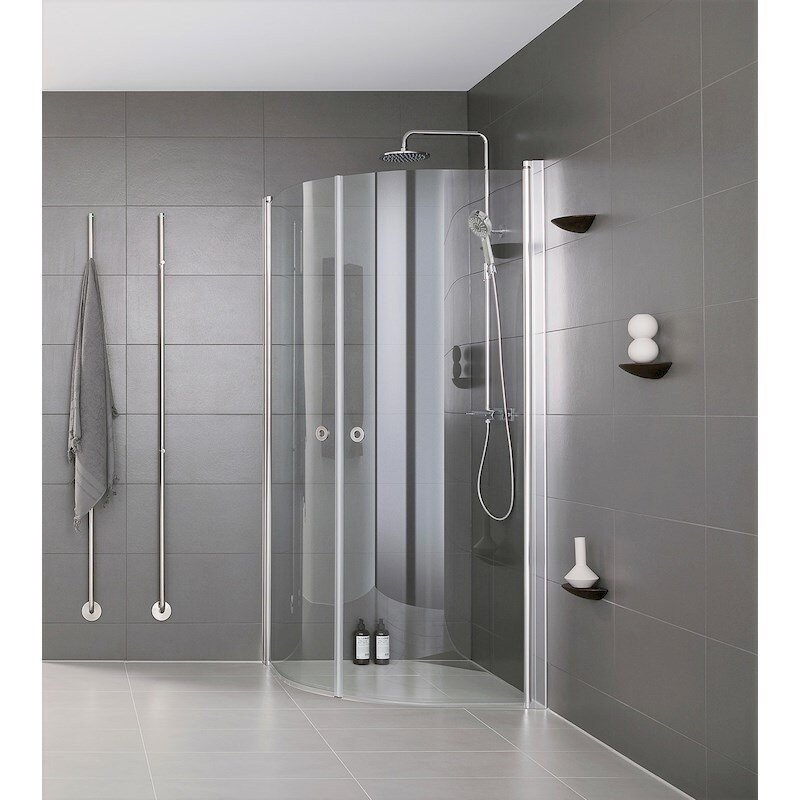 Pusapvalė dvisienė dušo kabina be padėklo