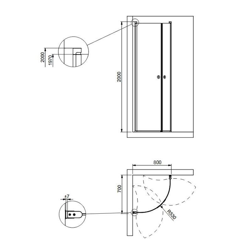 | Dušo kabinos matmenys | 700x800 |