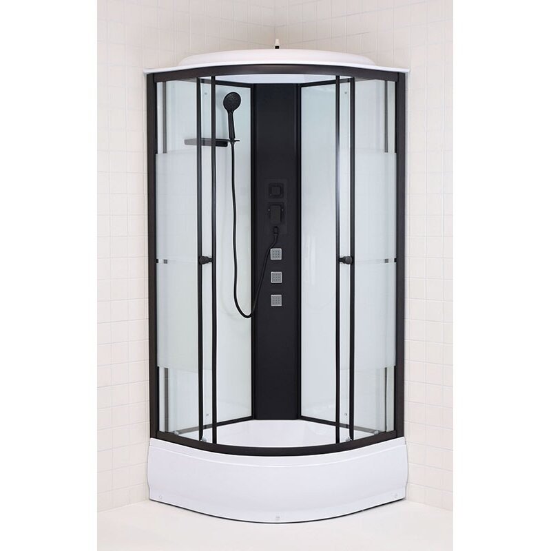 Pusapvalė ketursienė hidromasažinė dušo kabina su aukštu akrilo padėklu