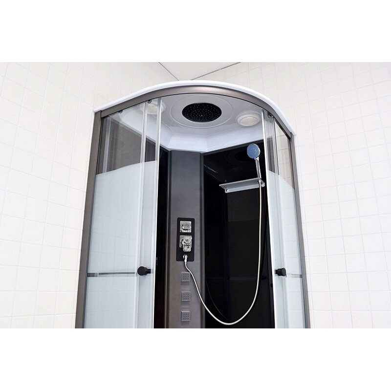 Pusapvalė ketursienė dušo kabina su aukštu akrilo padėklu