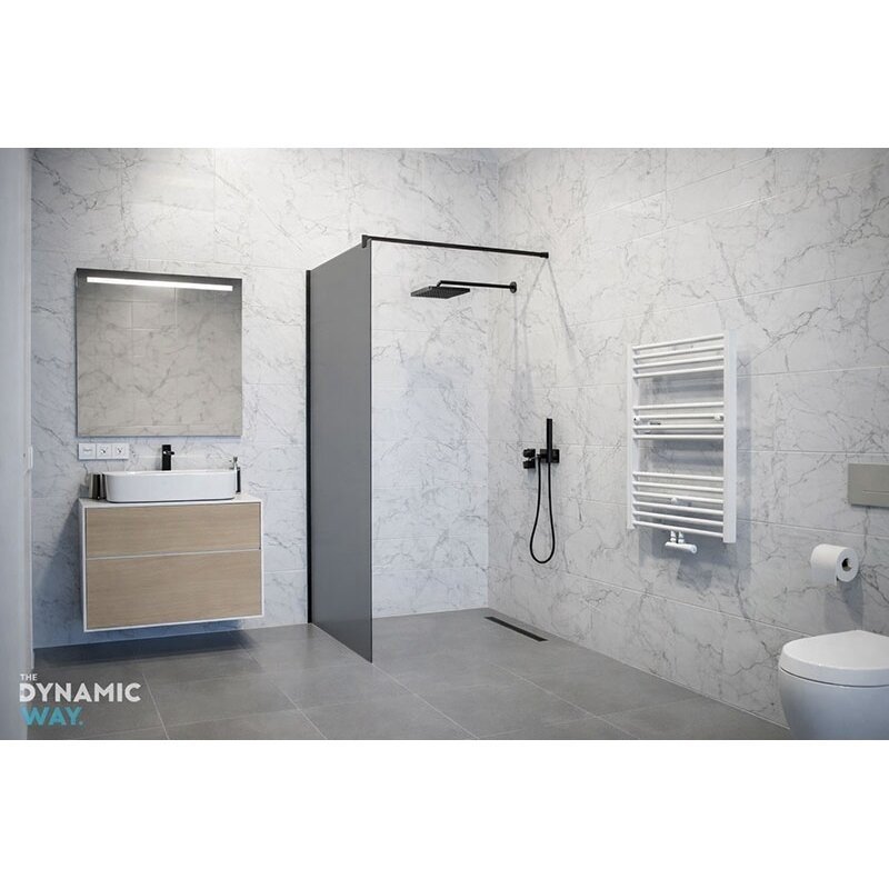 8 mm pilkai tonuotas grūdintas stiklas, padengtas NANO danga, apsaugančia stiklą nuo kalkių nuosėdų ir užtikrinančia ilgalaikį skaidrumą. NANO danga apdorotą stiklą lengviau nuvalyti, jis ilgiau išlaiko patrauklią išvaizdą.