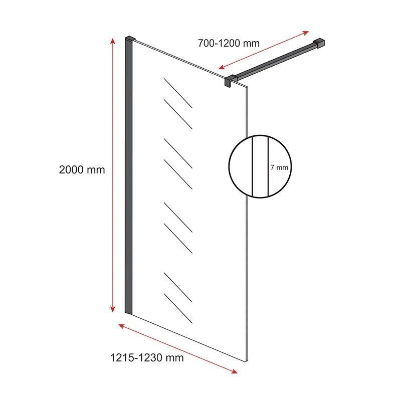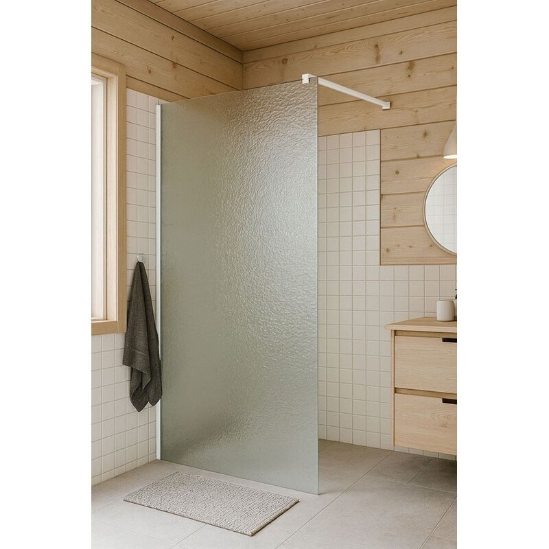7 mm grūdintas stiklas su reljefiniu paviršiumi (Hammered) išorinėje pusėje. Vidinės stiklo pusės paviršius - lygus.
