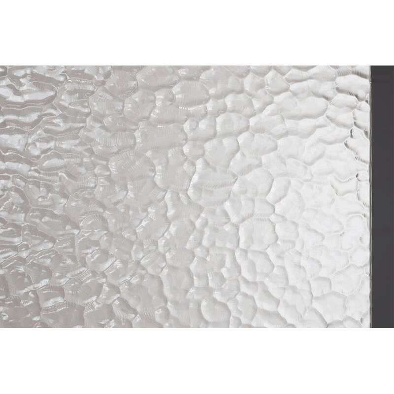 7 mm grūdintas stiklas su reljefiniu paviršiumi (Hammered) išorinėje pusėje. Vidinės stiklo pusės paviršius - lygus.