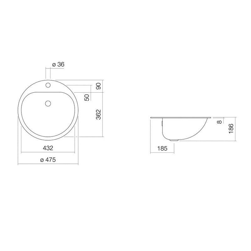 Matmenys:Ø 47,5 cm, aukštis - 18,6 cm, dubens gylis - 17 cm