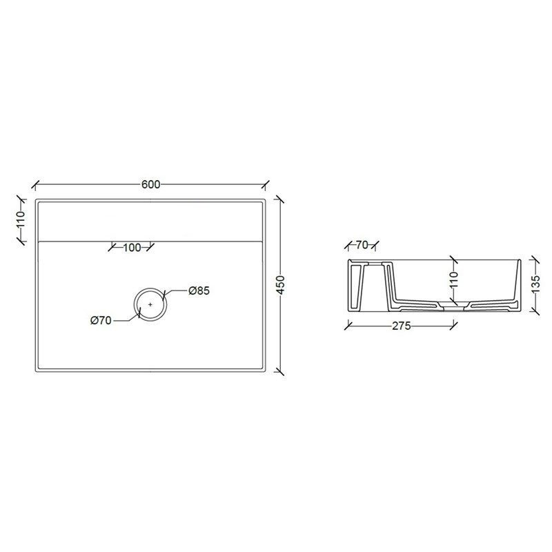 Matmenys: ilgis - 60 cm, plotis - 45 cm, aukštis - 13,5 cm