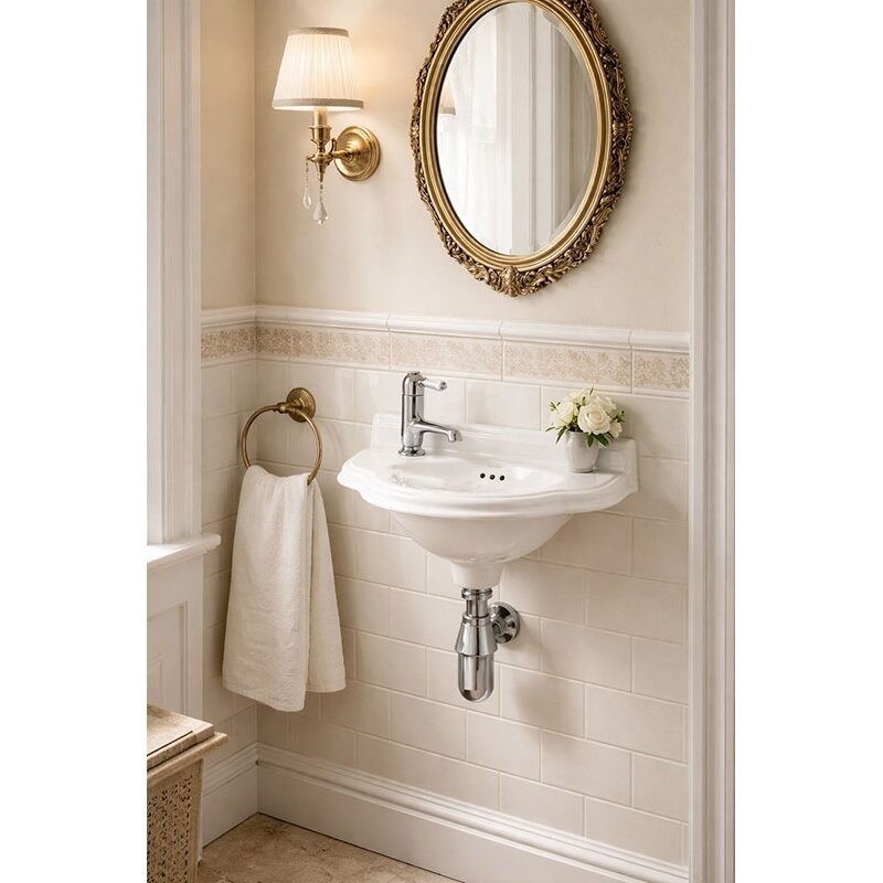 Pakabinamas retro stiliaus keraminis praustuvas, kairinis