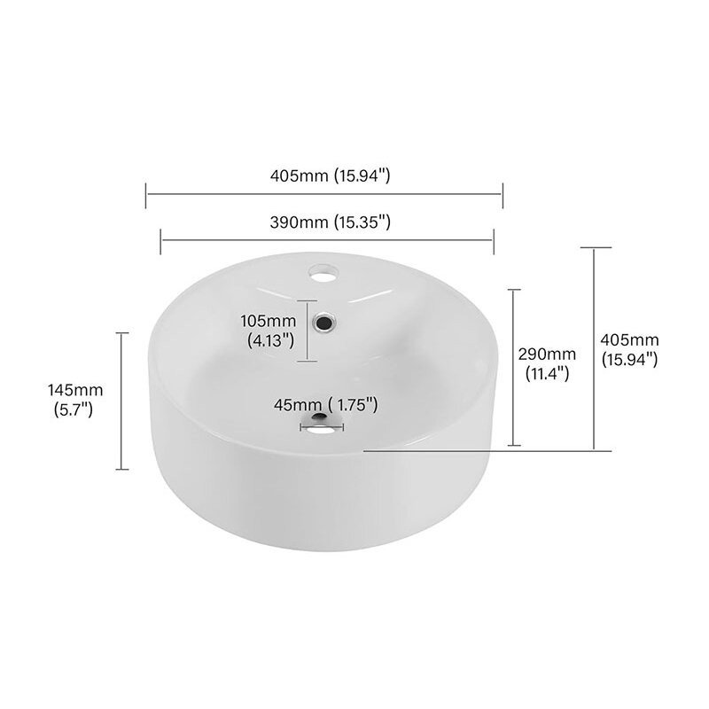 Matmenys: Ø 40,5 cm, aukštis - 14,5 cm, gylis - 10,5 cm