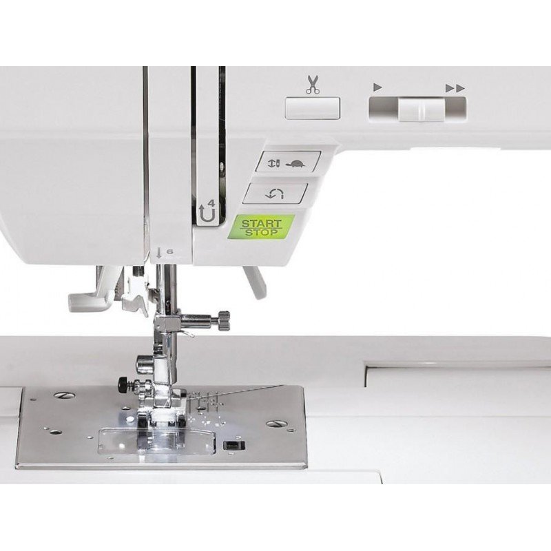 Kitos savybės: Built-In Needle Threader, Thread Cutter, Thread Cutter Shut Off, Adjustable Stitch Width, Adjustable Stitch Length , Programmable Needle Up/Down, OneTouch™ Stitch Selection, Twin-Needle Function