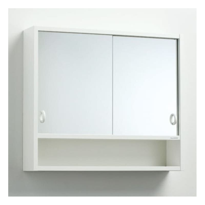Spintelė su dvejomis slankiomis veidrodinėmis durelėmis. Spintelės viduje yra viena lentynėlė.