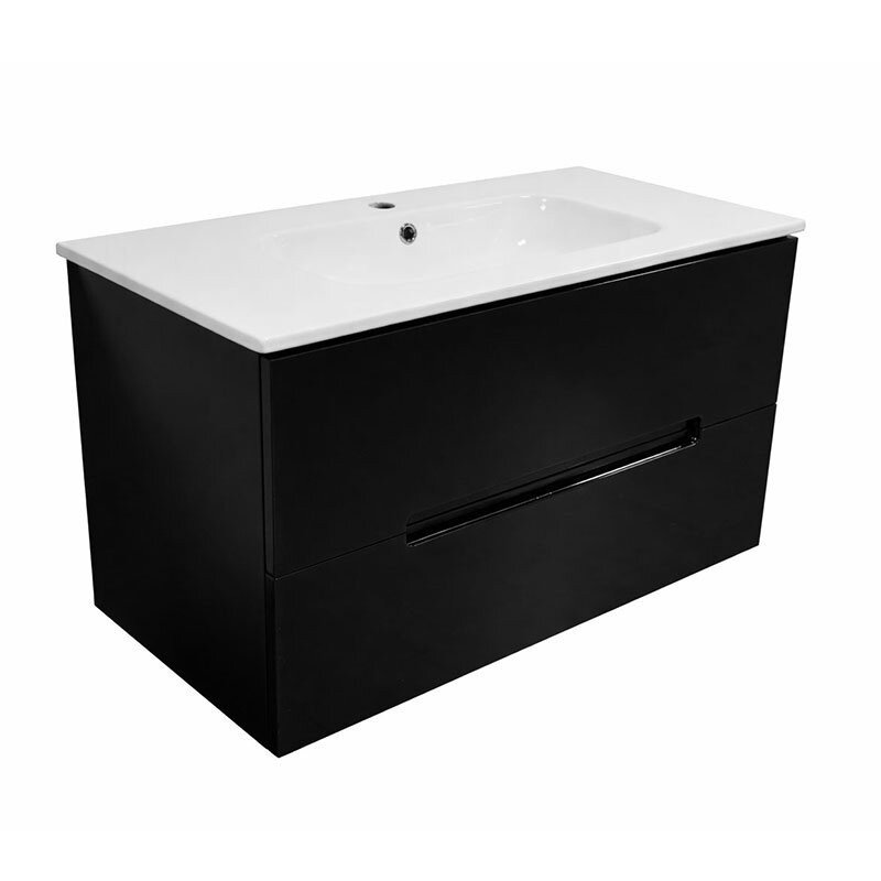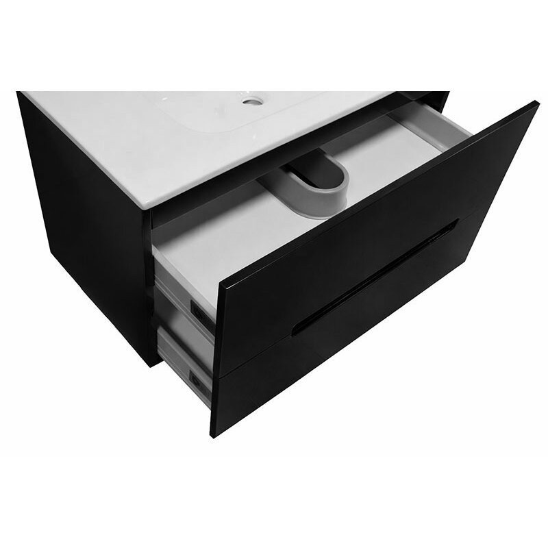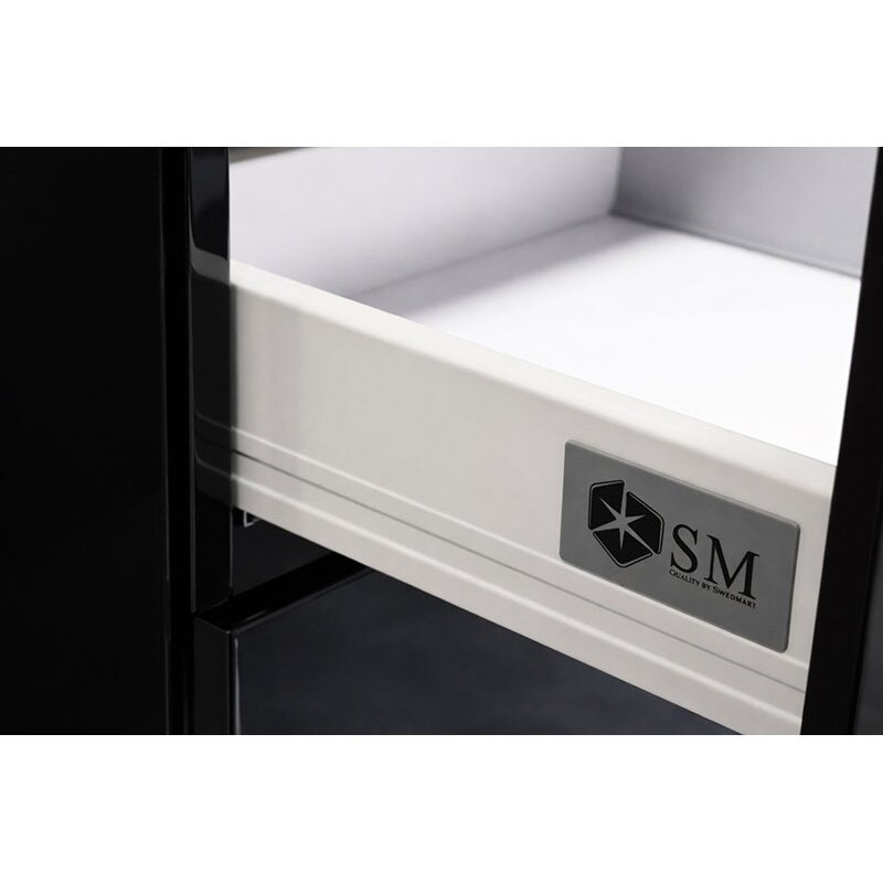 Spintelė su dviem stalčiais. Stalčiai su lėto užsidarymo mechanizmu. Yra paruošta išpjova sifonui.